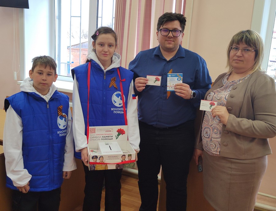 к всероссийской акции «Красная гвоздика» и приобрели у волонтёров значки в